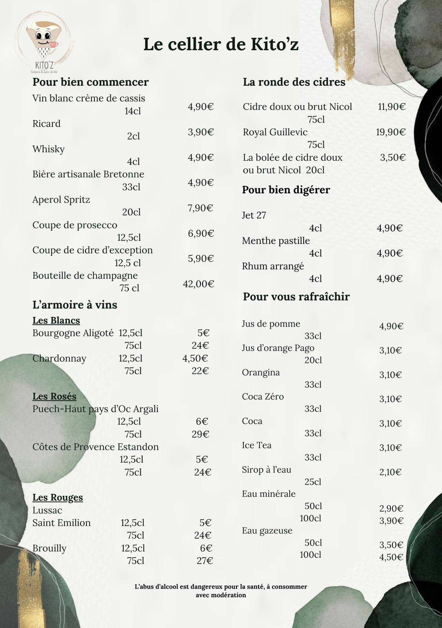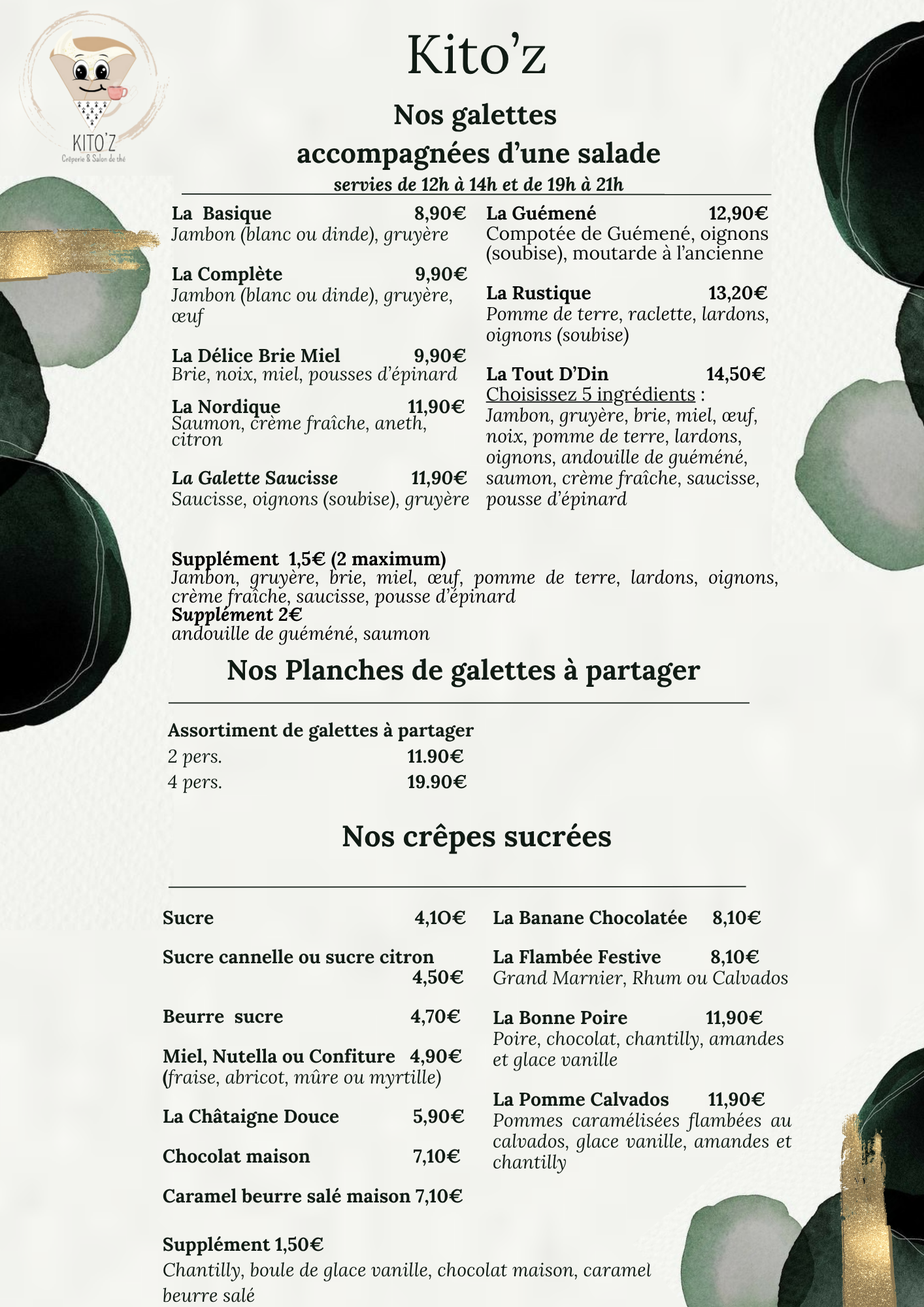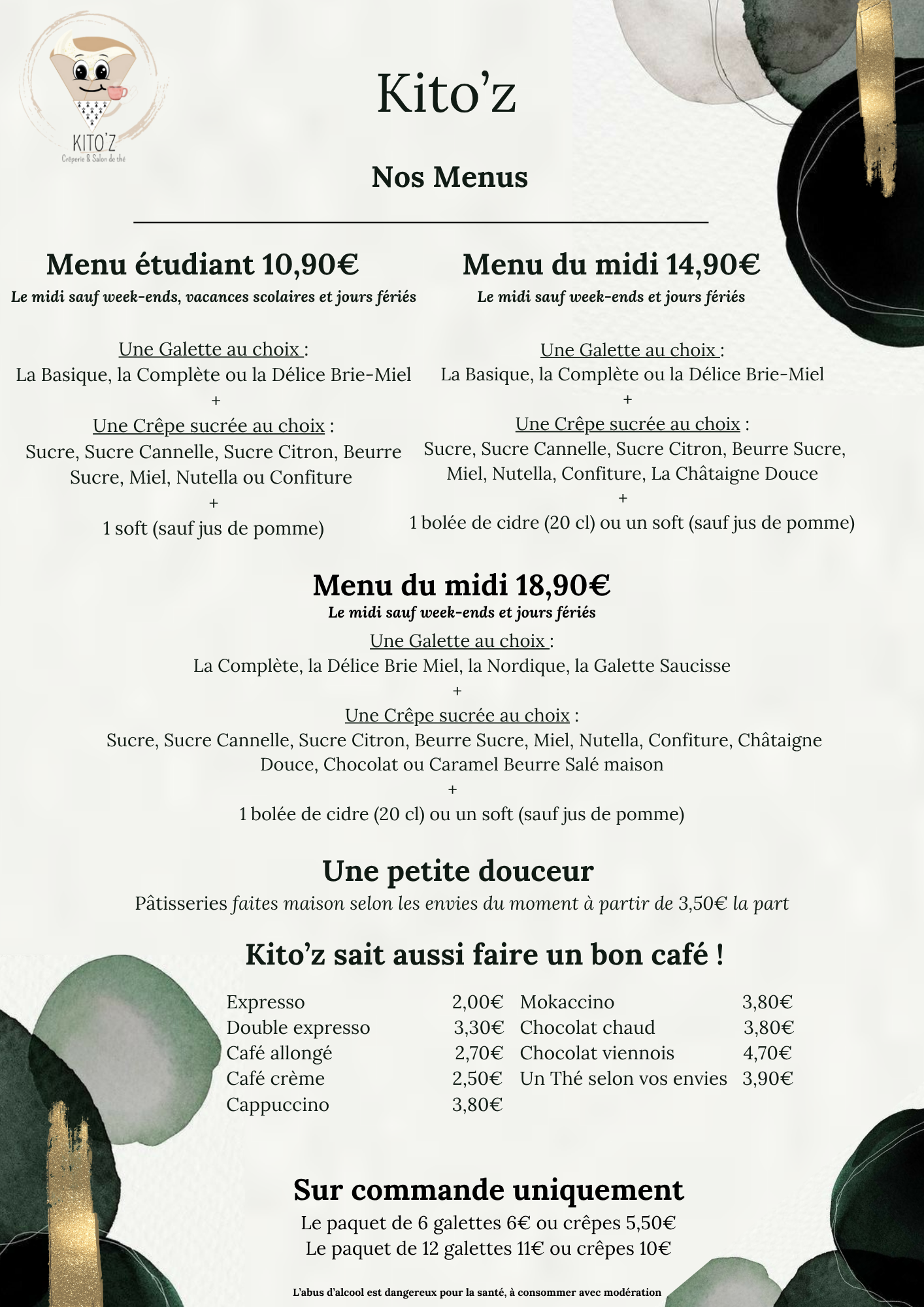 La Crêperie et Salon de thé KITO'Z vous accueille du Mardi au Samedi.